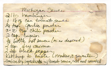 Plattsburgh, a few bun-lengths outside the Blue Line, is the uncontested epicenter of the michigan movement, though how the delicacy made its debut isn’t clear. There are about as many creation stories as there are fake secret recipes traded around the area (my own Clare & Carl’s counterfeit included below).