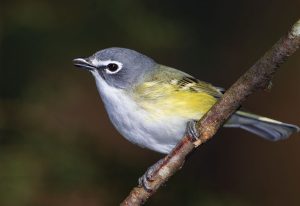 A stocky small migrant songbird with a medium-length tail. Vireos breed in open woods, usually containing a mixture of conifers and deciduous trees. When feeding, they work deliberately along branches, searching for insects. This species sometimes flies out to catch insects in mid-air, or searches for them on the bark of major limbs. Its song is a series of sweet, slurred phrases like that of red-eyed vireo, but slower and more musical. Blue-headed vireo winter along the southeastern seaboard, Gulf Coast, Mexico and Central America.