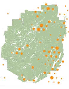 Eurasian watermilfoil data from www.imapinvasives.org. The larger the circle, the more confirmed observations.