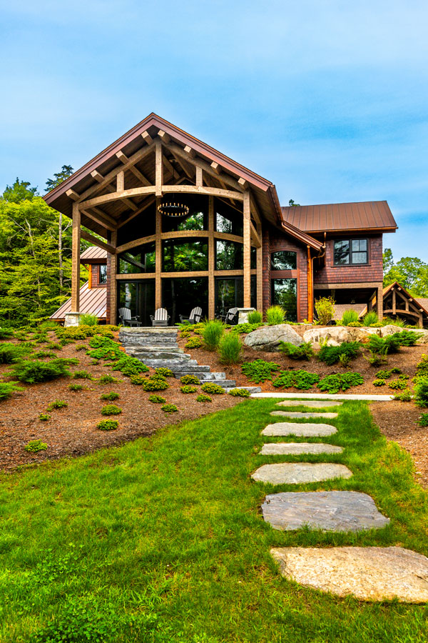 It was important to the Fontanas and to Ramsgard that their new construction feel like it was always part of Skanendowa. That meant reinterpreting classic Adirondack log style for the 21st century. It also meant shrinking their plans.