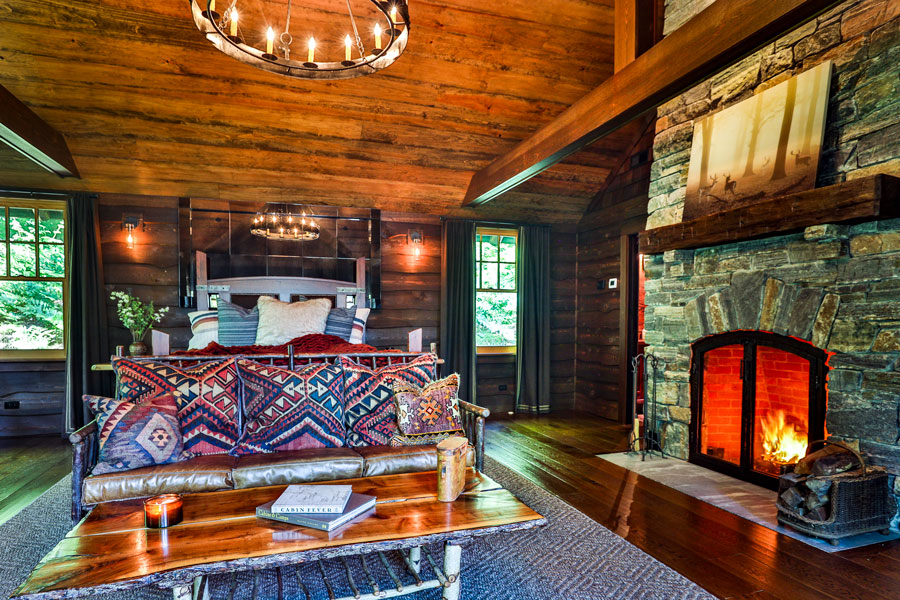 Christine has brought Skanendowa’s historic cottages into the present with modern upgrades inspired by camp-and-cabin style icon Ralph Kylloe. The renovated cabins feature dark, rustic wood, exposed beams and touches guests appreciate, like broad bunk beds and overstuffed leather couches.