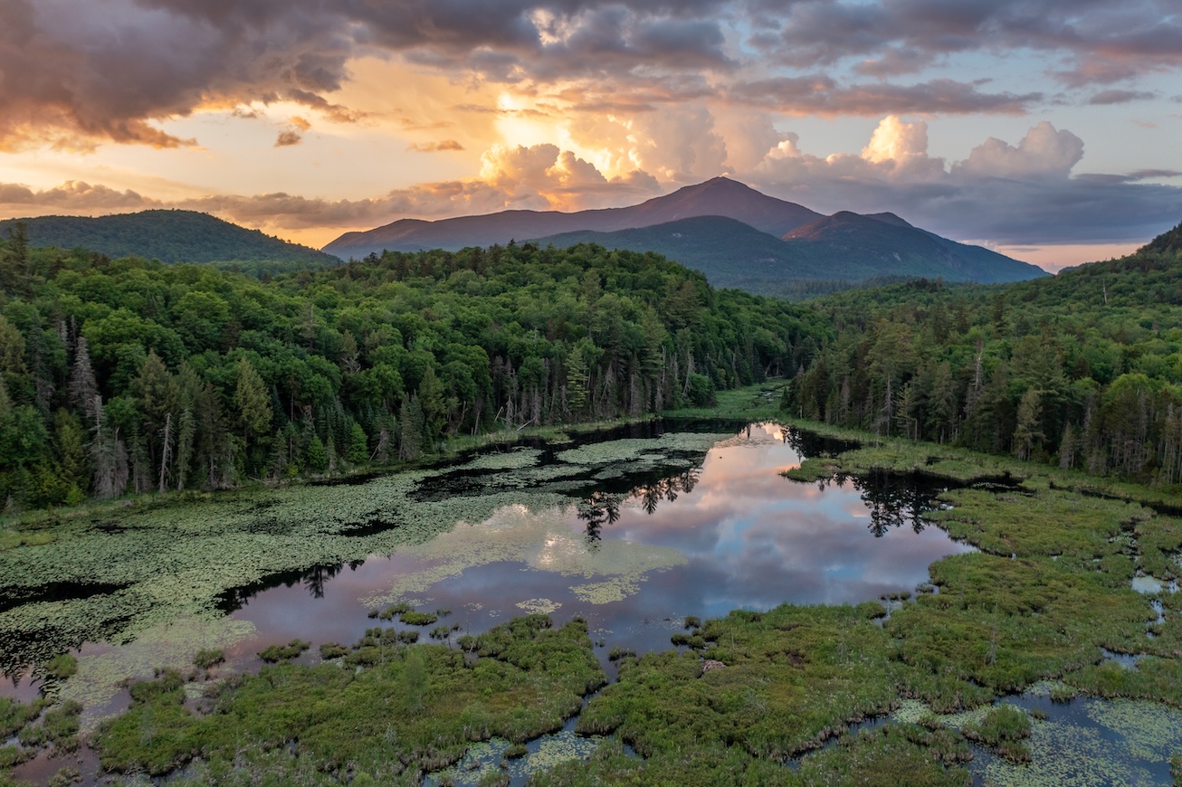 Light has remarkable, changeable qualities in the Adirondacks. In winter it can be pink, floating warmth over a chill landscape, or blue, tinting a blank canvas of snow to mirror an austere sky. In summer, light has depth and heft to it, a physical intensity that bears down like gravity or hauls a scene right into the viewer’s eyes and brain.