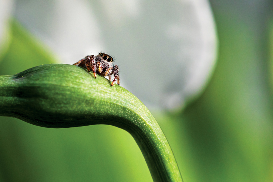 He explains that his top picks were those “that evoke a clear sense of emotion or atmosphere,” such as Janet Thomas’s Whispers of the Forest: “Each step draws you deeper into a secret, sylvan world. … This is storytelling at its best—imagery that invites the viewer into a narrative unfolding just beyond the frame. Also, the shot of the tiny spider perched on a gently curving leaf [Jessica Chevalier’s Jumper] is elevated by its soft, somewhat abstract background, which perfectly highlights the spider’s delicate details. Macro photography is both technically demanding and artistically rewarding, transforming something small and easily overlooked into a moment of wonder.”